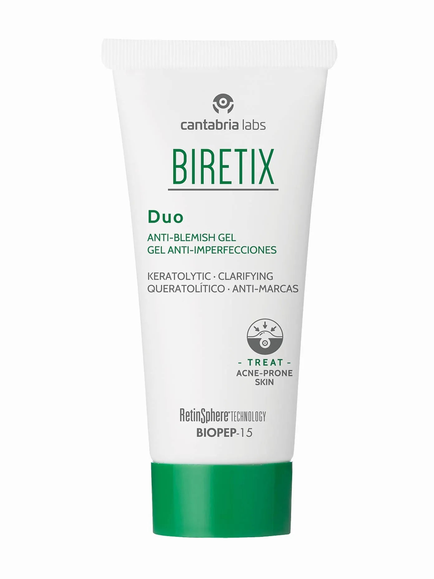 Key ingredients include RetinSphere® Technology, which combines two high-tolerance retinoids (Hydroxypinacolone Retinoate and Retinol Glycospheres) that stimulate epidermal renewal and smooth the skin while reducing blemishes and imperfections. BIOPEP 15, a plant-based peptide technology, works to inhibit the proliferation of Cutibacterium acnes, the primary bacterium involved in acne development. Salicylic Acid provides effective exfoliation, helps to refine pores, and reduces the formation of blemishes. Vitamin E acts as an antioxidant, preventing free radical damage and helping to maintain the balance of the skin barrier. The formulation is tested under dermatological control and is fragrance-free.